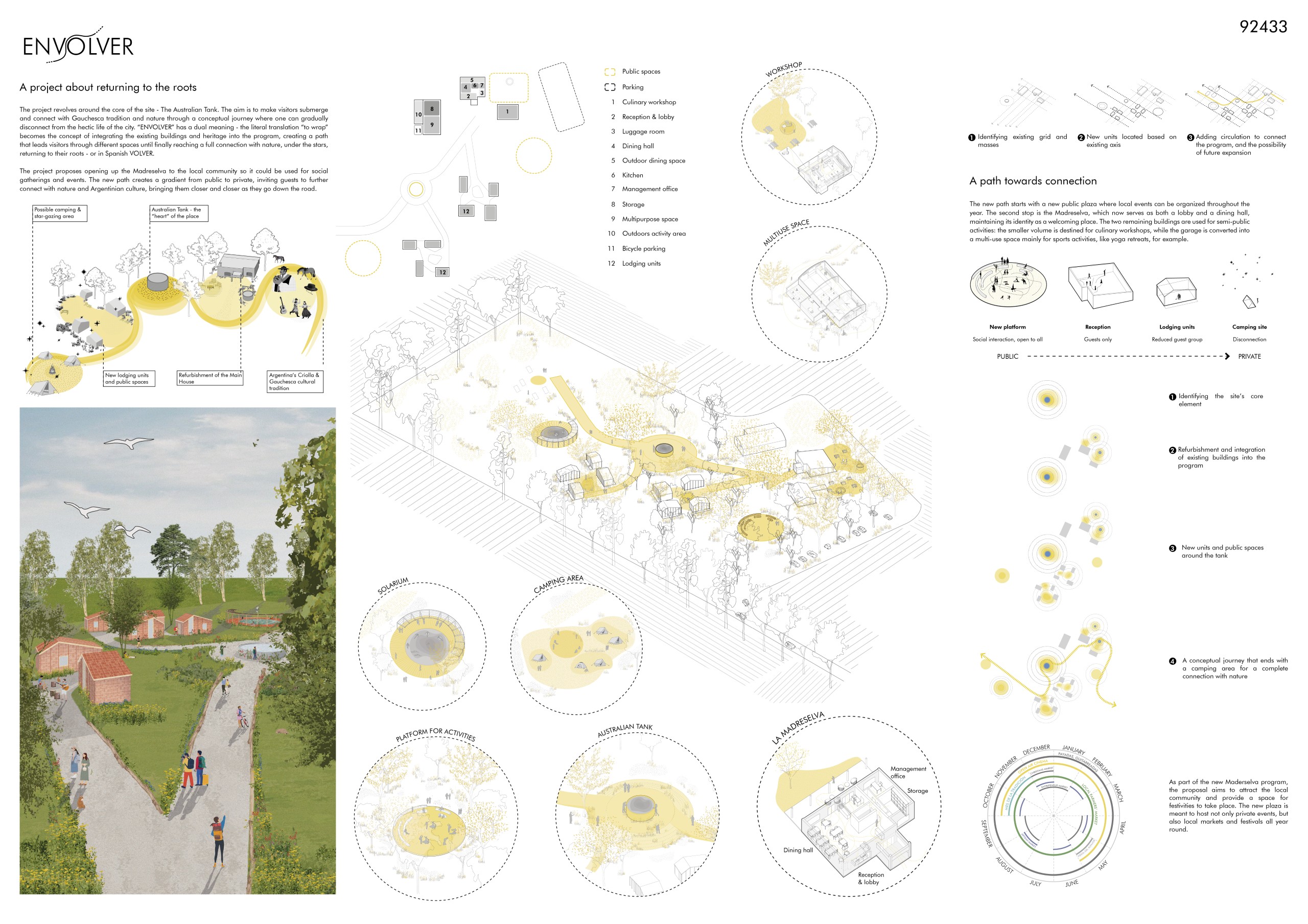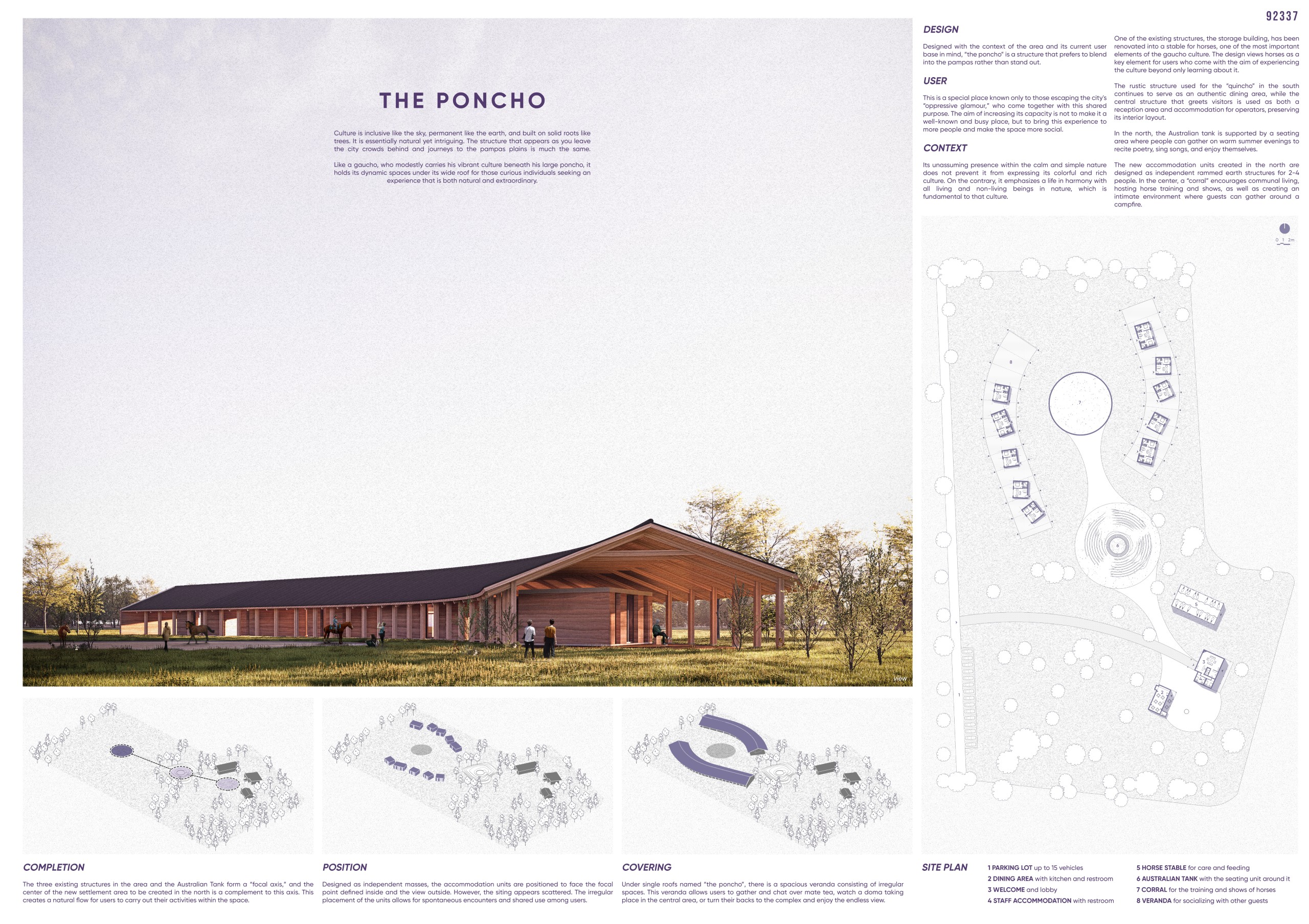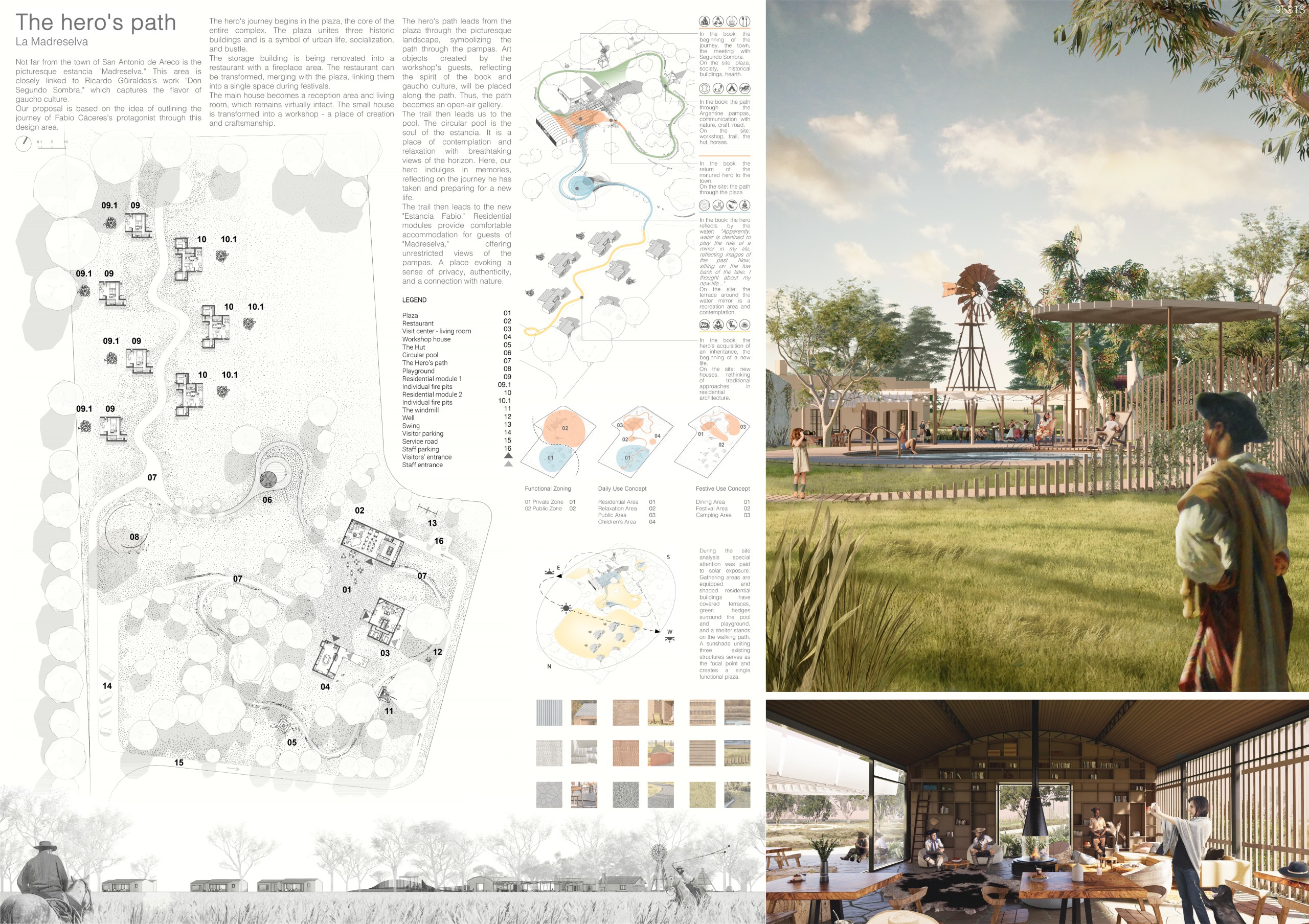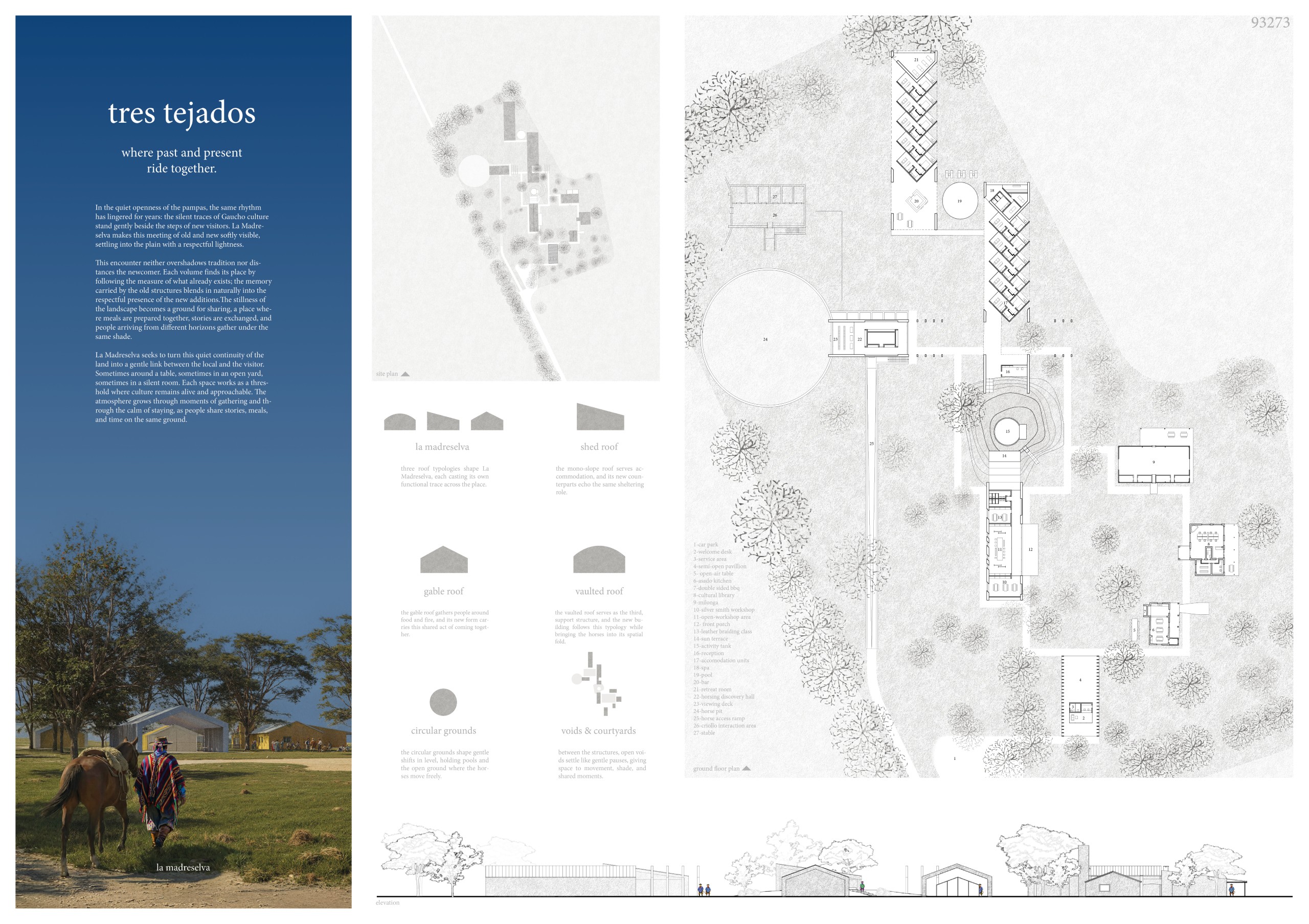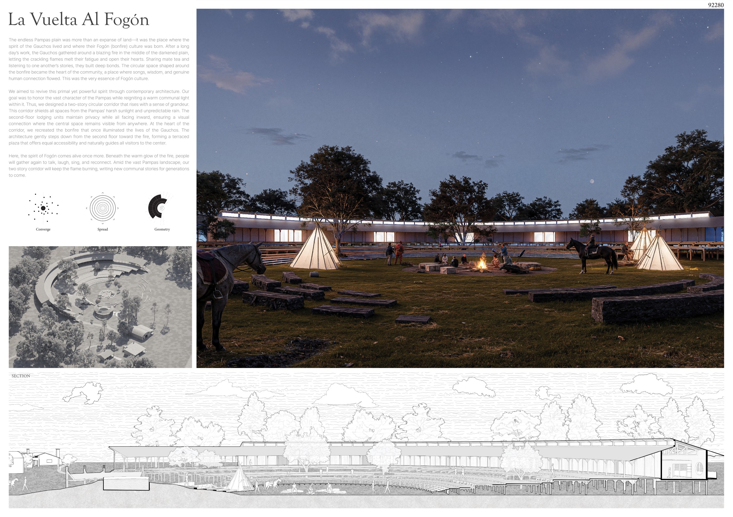 The concept of the project is directly connected to the cultural aspects and daily life of the gaúcho people. Gaúcho culture is centered around the traditional payada circles, which serve as the starting point for the development and spatial organization of the architectural program.