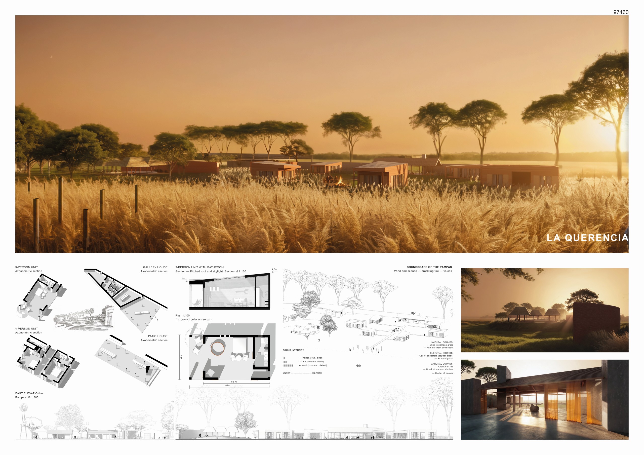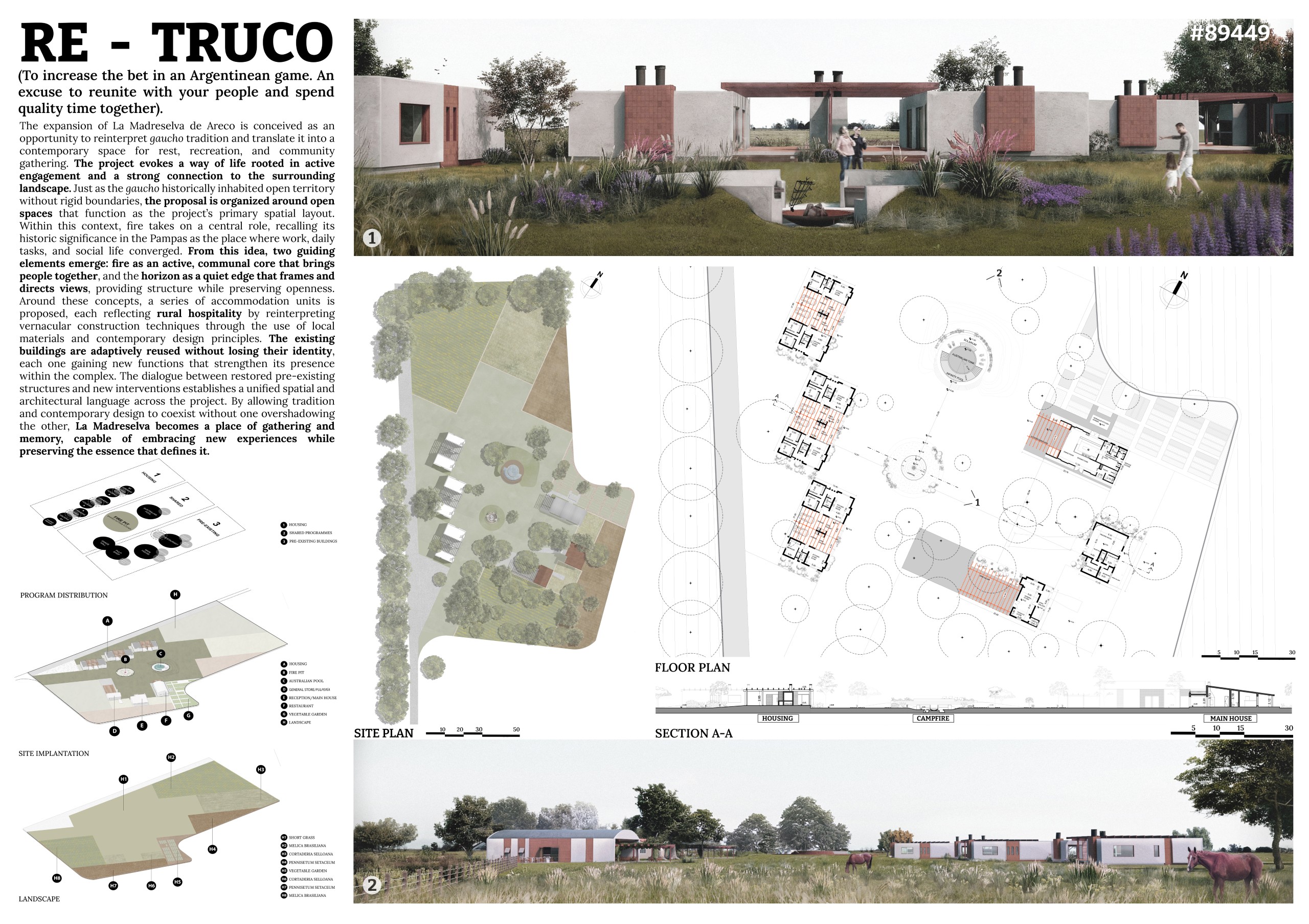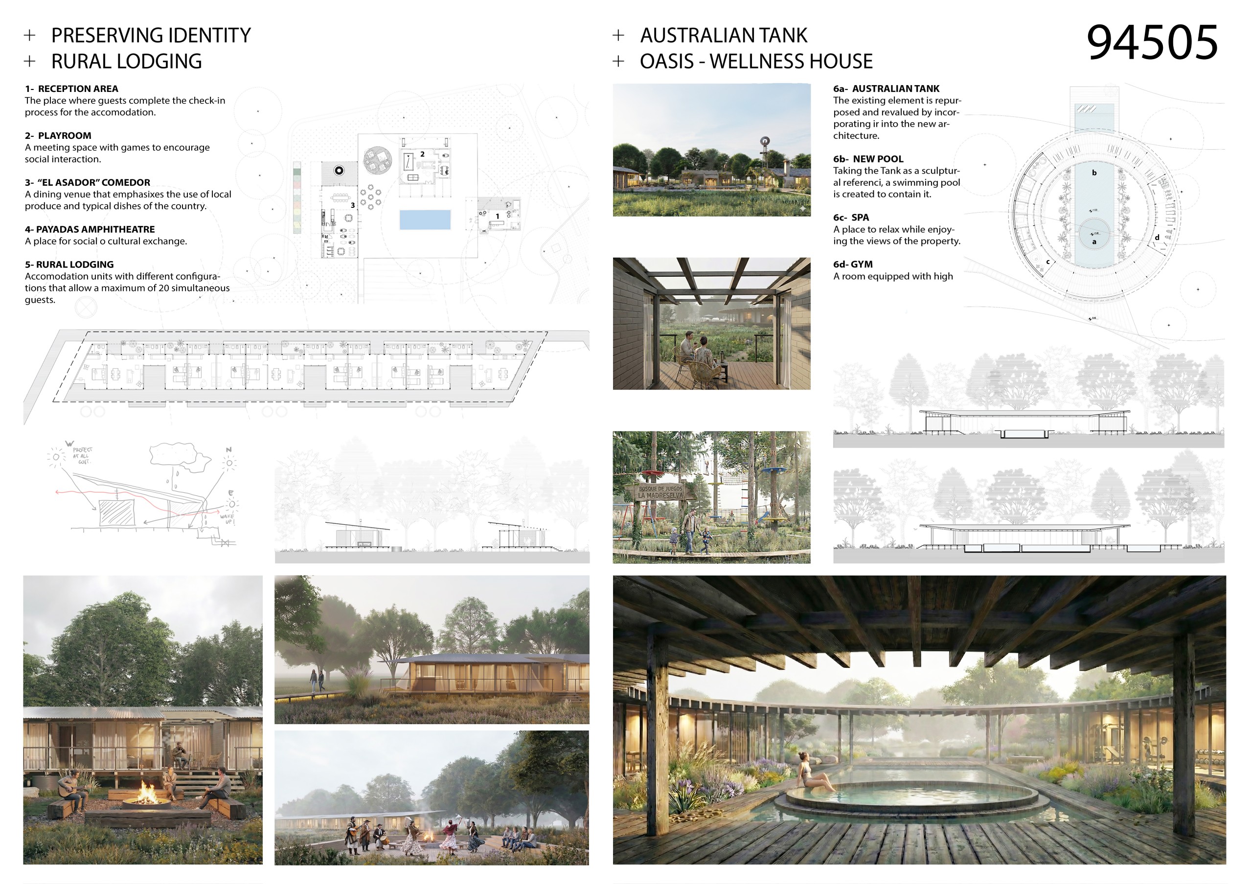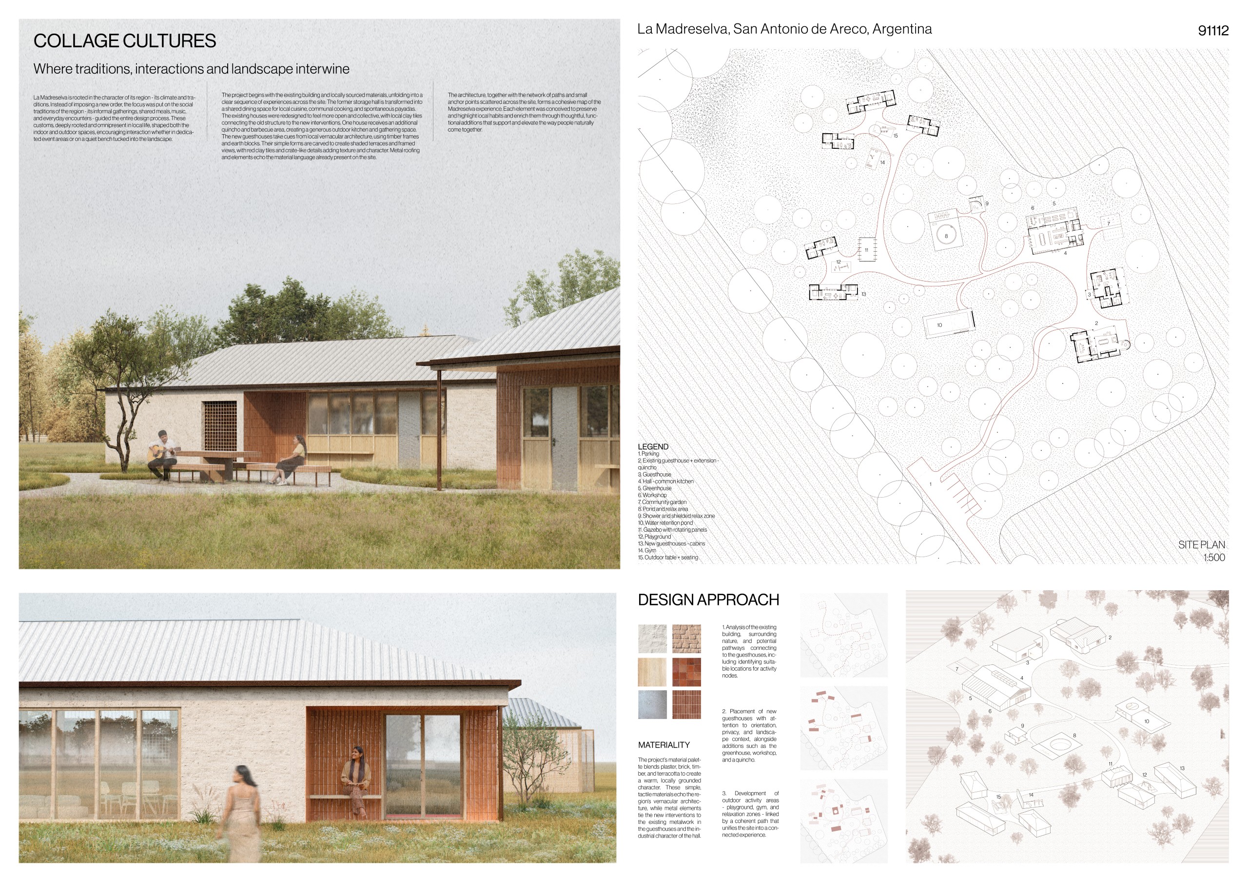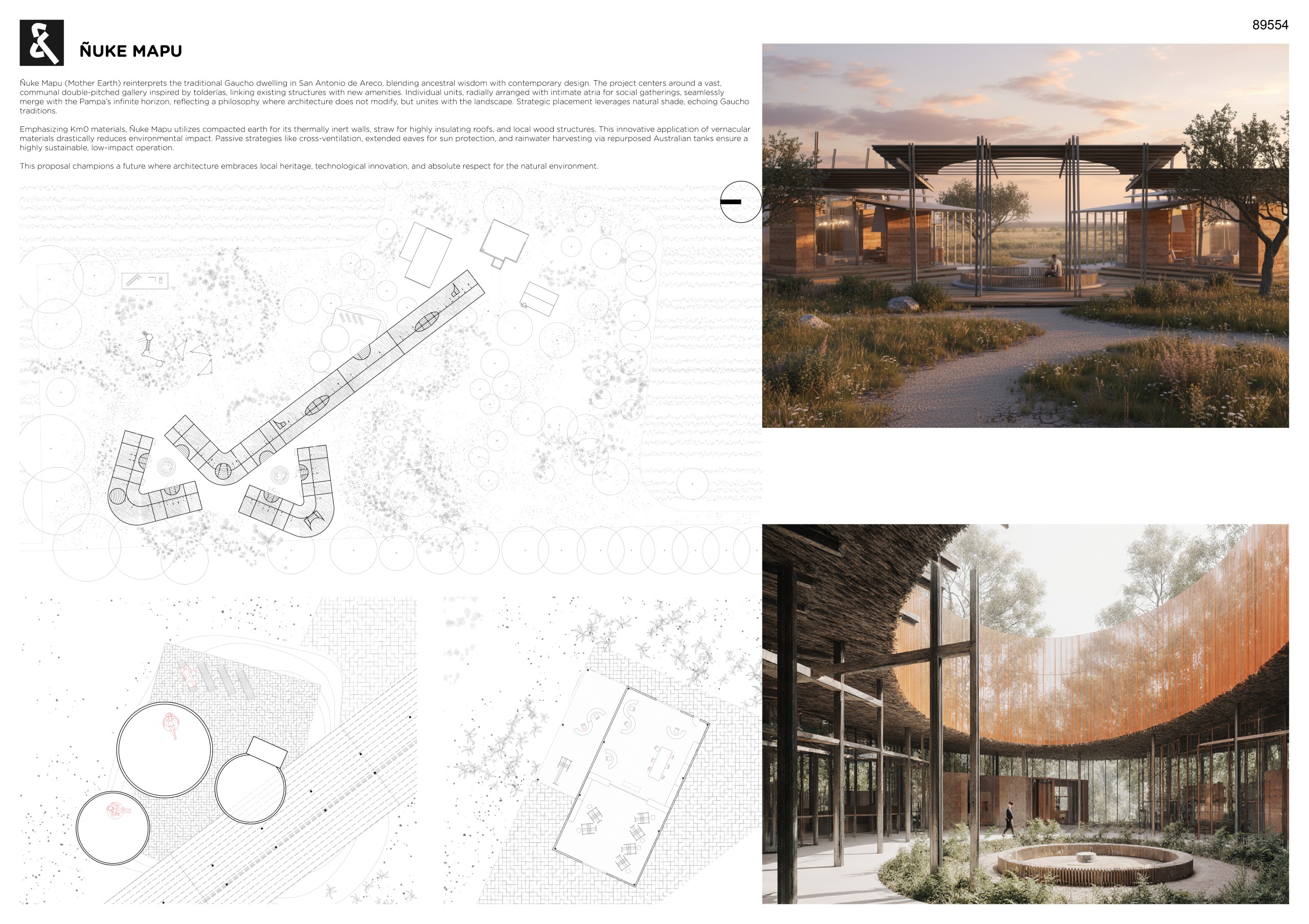 “La Madreselva” invited participants to envision the expansion of a distinctive rural retreat set within the Argentine Pampas, with the aim of accommodating up to 20 guests while preserving the site’s intimate and authentic character. The competition called for the design of small-scale lodging units capable of integrating harmoniously with the surrounding landscape through sensitive material choices and sustainable design principles. More than a simple hospitality project, the challenge encouraged a meaningful dialogue between past and present, connecting new architectural interventions with the existing structures and the vast rural context. Participants were free to explore a wide range of spatial strategies, from repeatable units to flexible systems or clustered configurations, allowing architecture to respond organically to both use and place.
