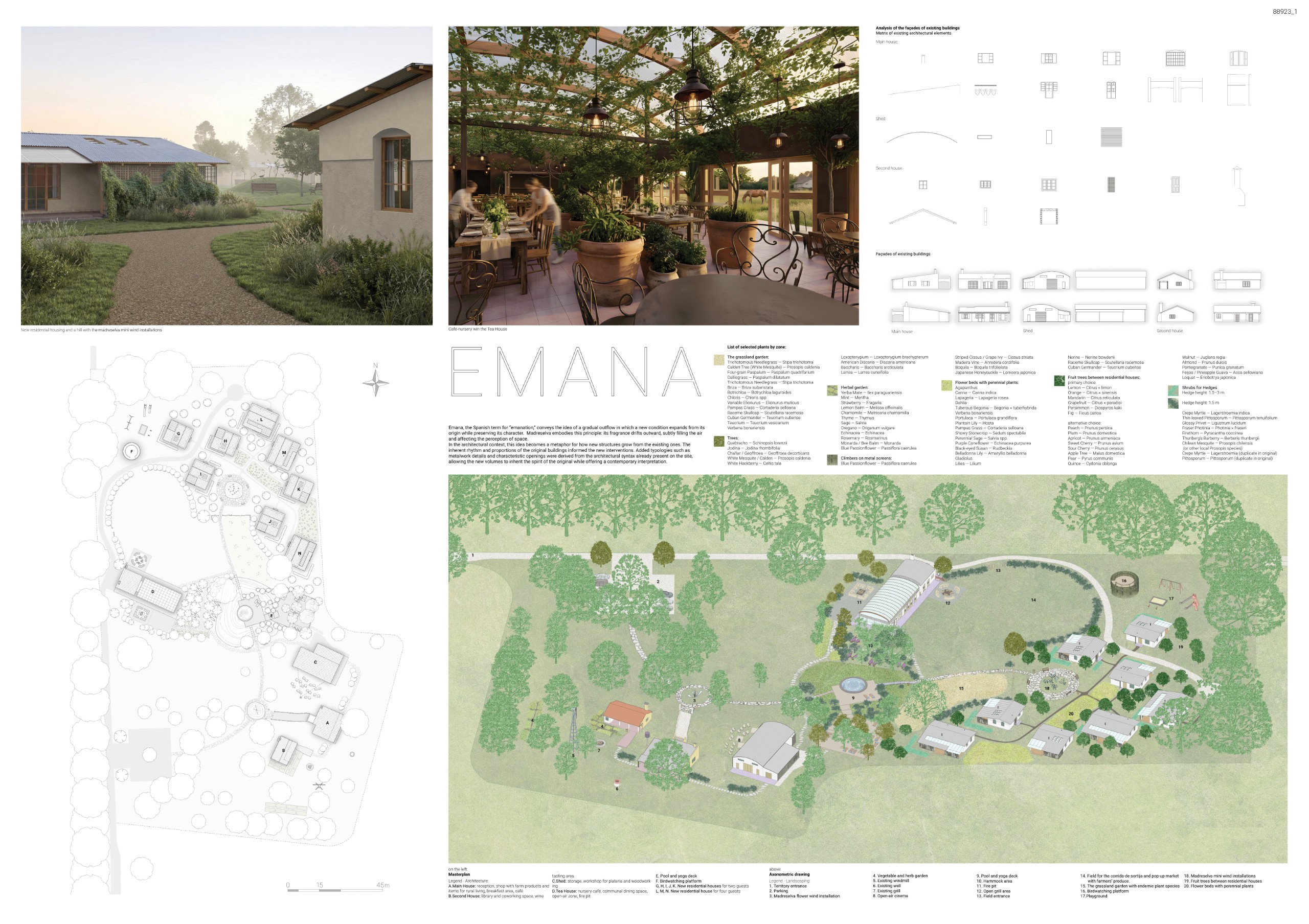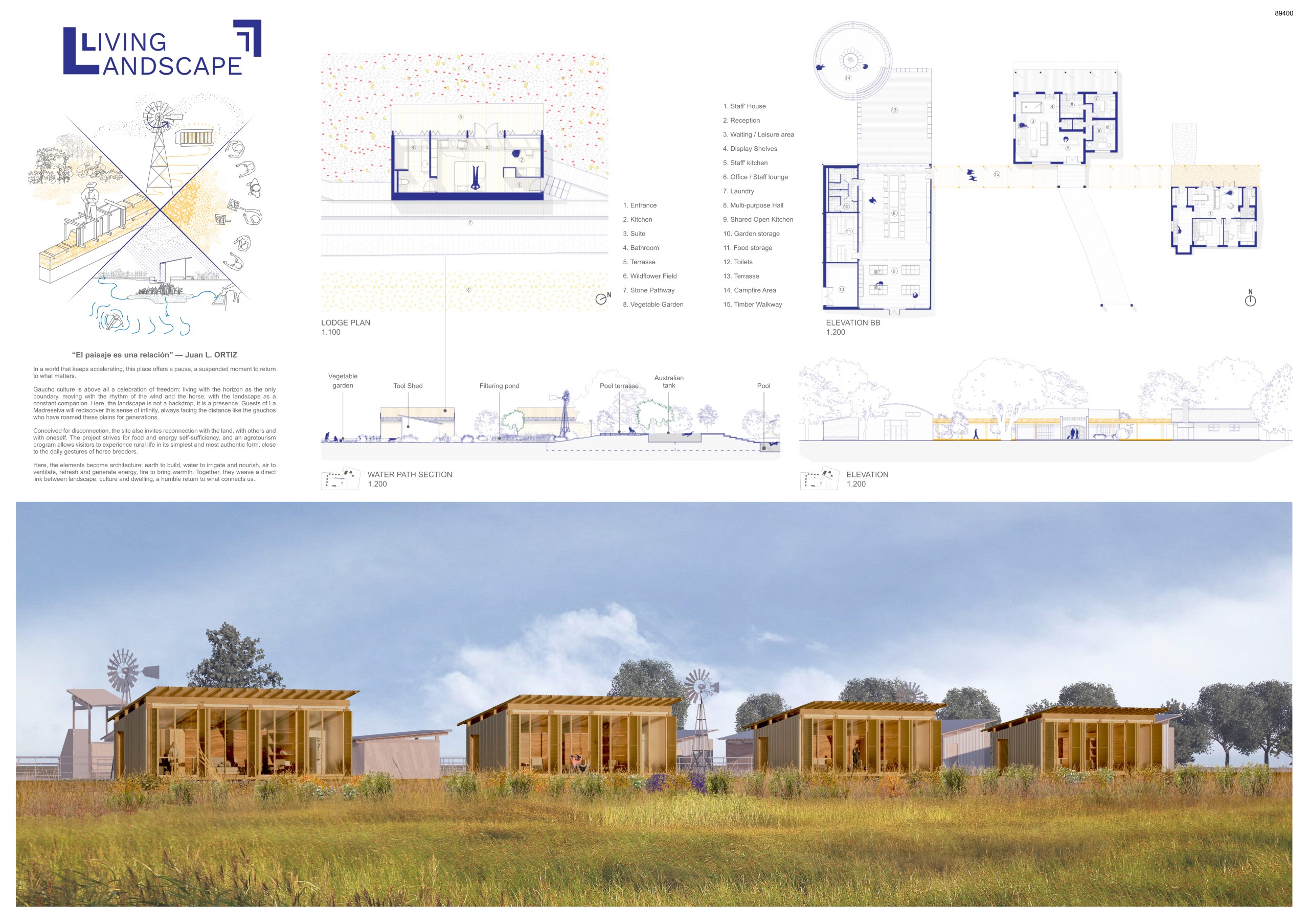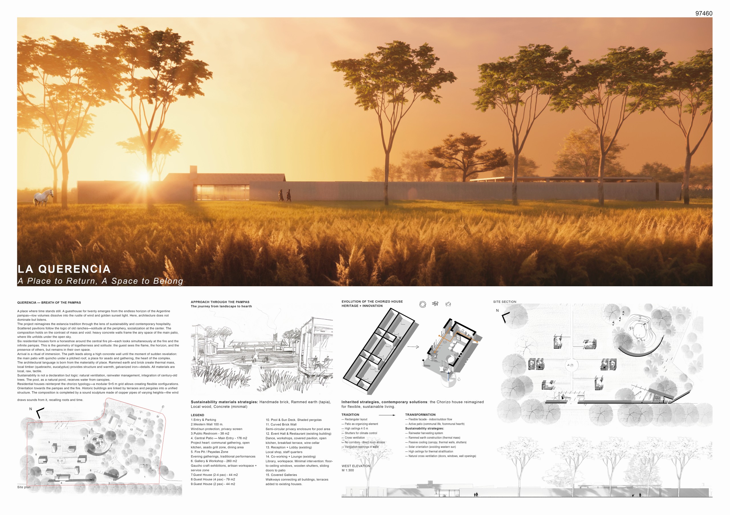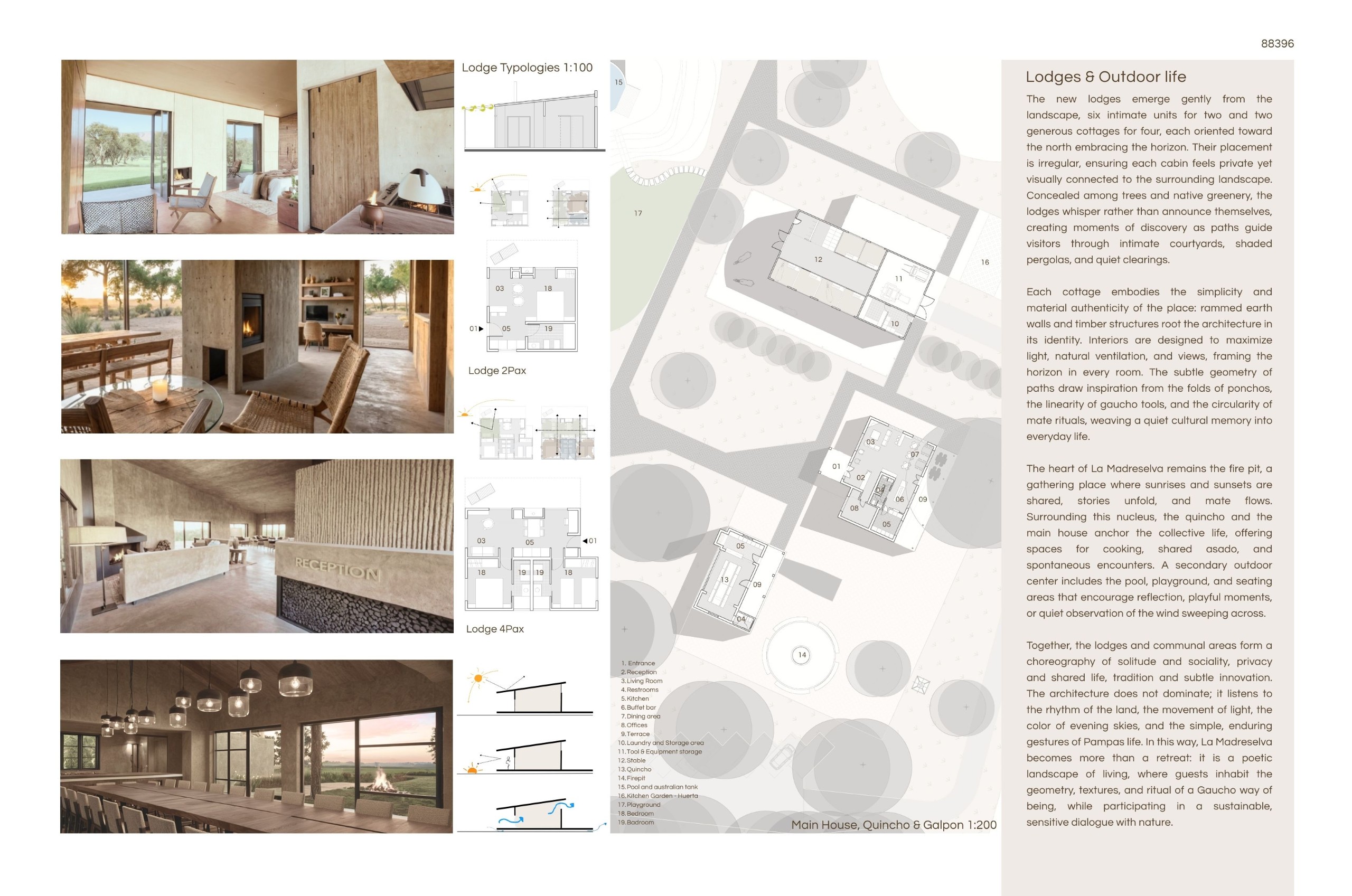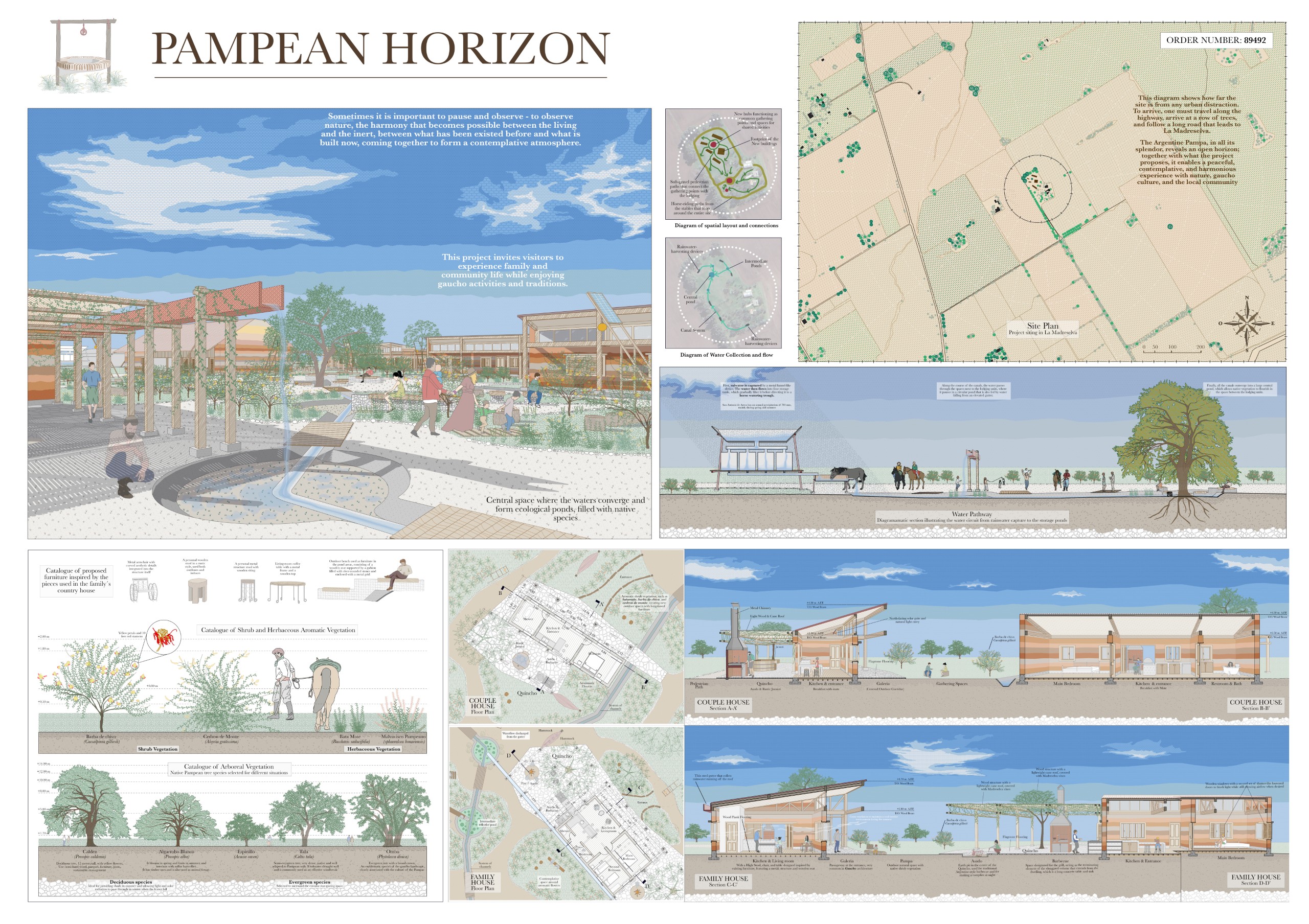 “La Madreselva” invited participants to envision the expansion of a distinctive rural retreat set within the Argentine Pampas, with the aim of accommodating up to 20 guests while preserving the site’s intimate and authentic character. The competition called for the design of small-scale lodging units capable of integrating harmoniously with the surrounding landscape through sensitive material choices and sustainable design principles. More than a simple hospitality project, the challenge encouraged a meaningful dialogue between past and present, connecting new architectural interventions with the existing structures and the vast rural context. Participants were free to explore a wide range of spatial strategies, from repeatable units to flexible systems or clustered configurations, allowing architecture to respond organically to both use and place.
