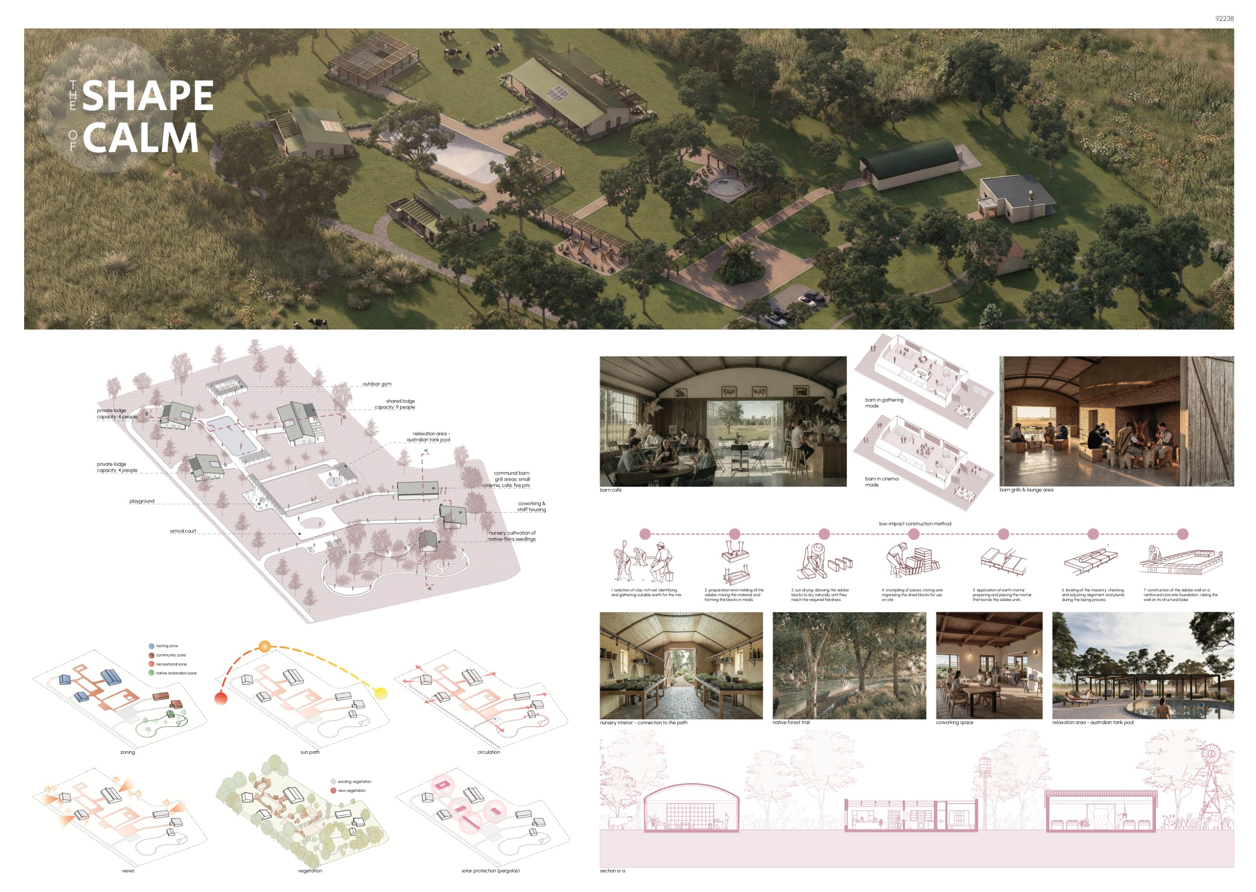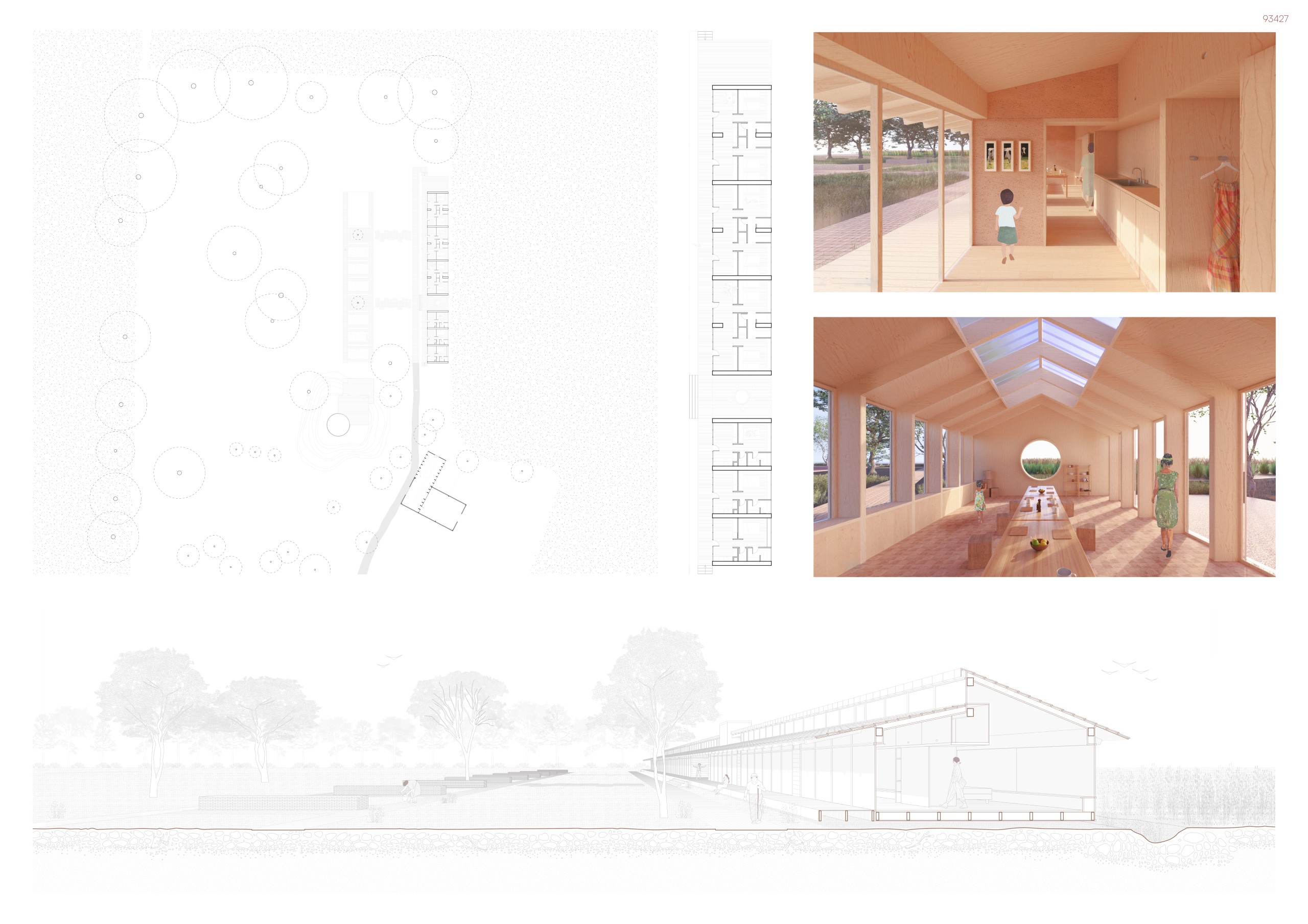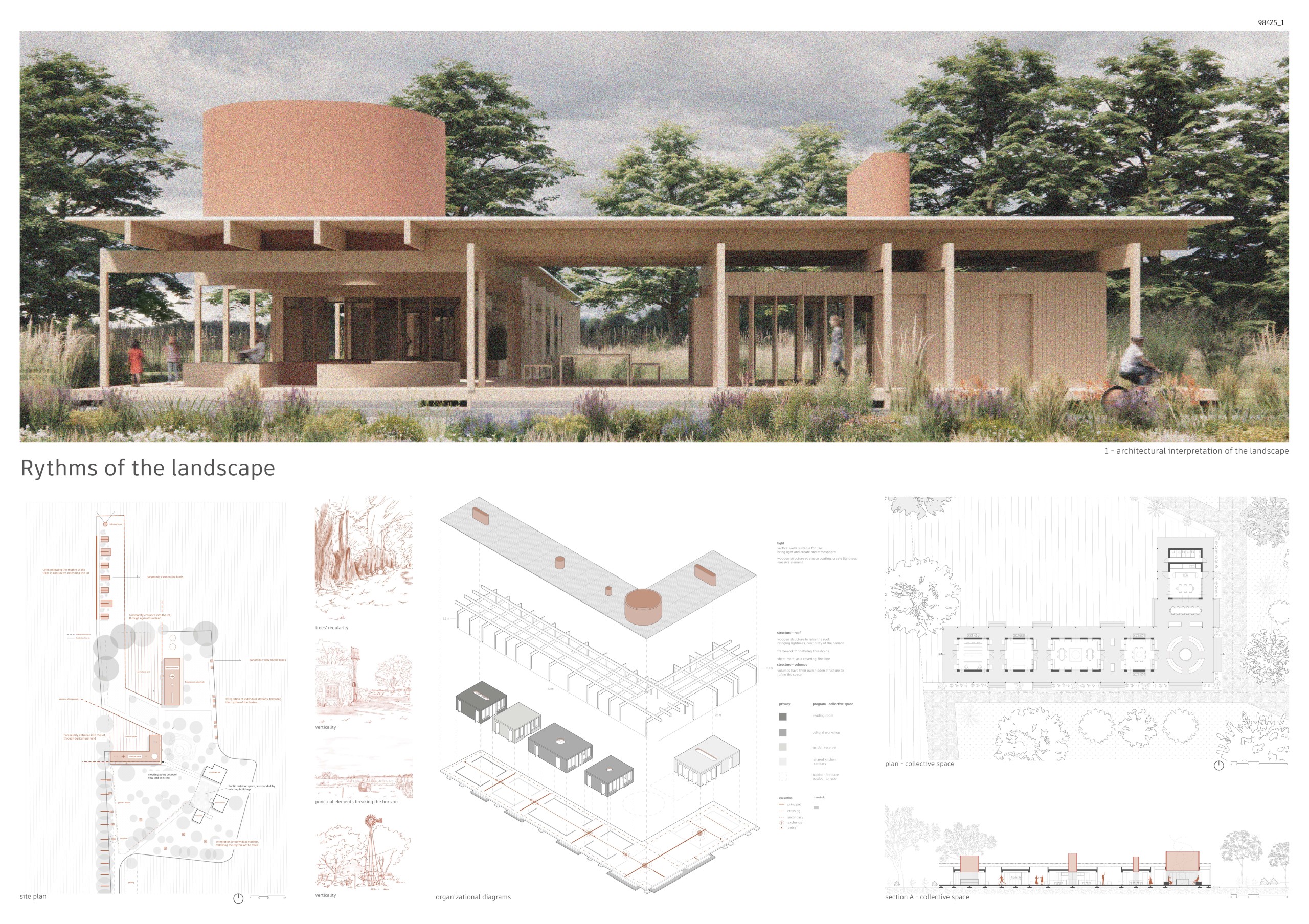 “This proposal stands out for its inventive use of materiality as a tool for programmatic organization. The resulting aesthetic is both simple and vibrant, utilizing unique geometries that do not overwhelm the rural site. By combining a sensitive material palette with well-placed outdoor public zones, the project achieves a high-quality environmental design that is both functional and visually engaging.”