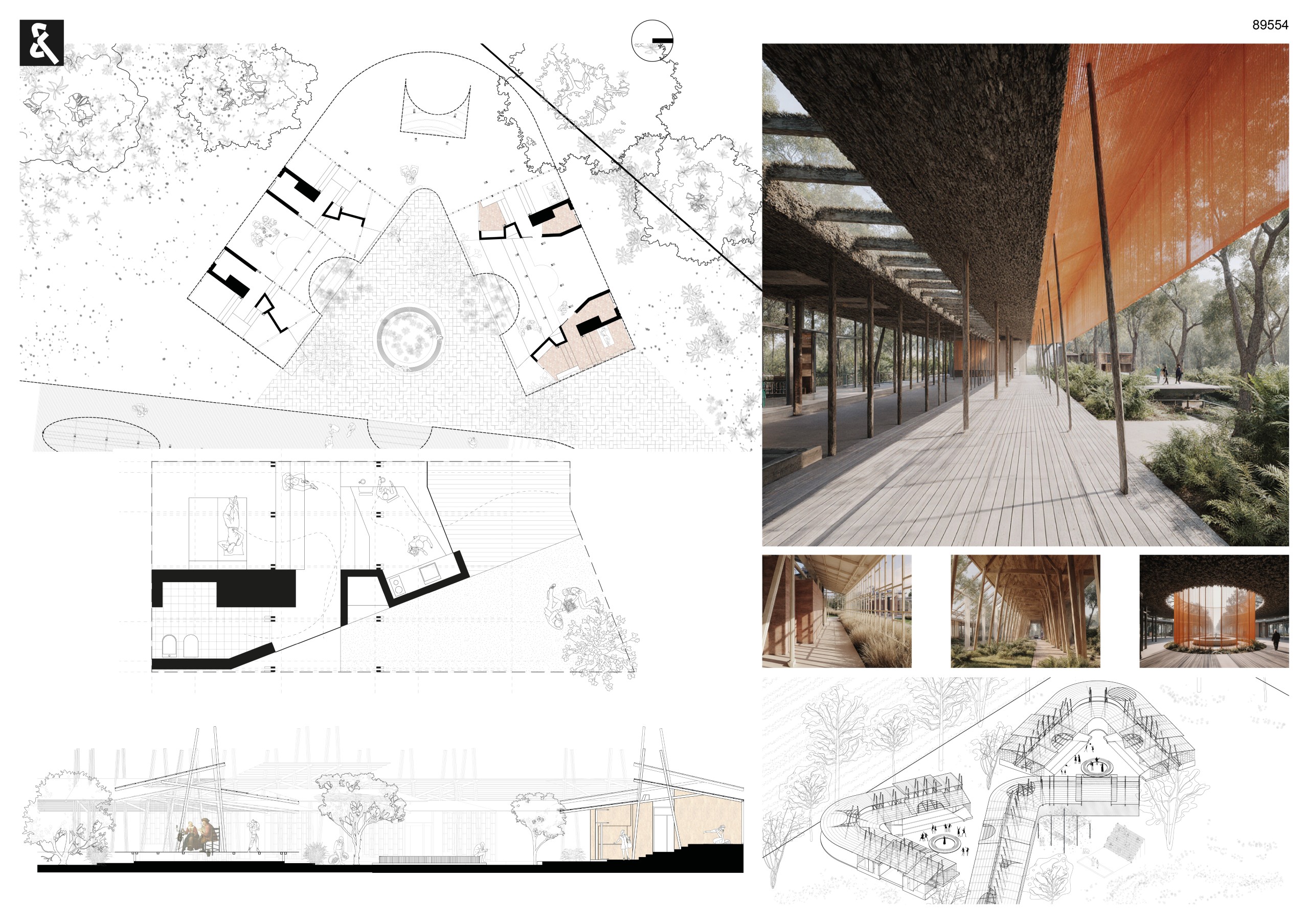 “I enjoyed how the sense of cultural and social gathering is woven into the architectural composition by material selection and free grid. The collage-like architectural language blends seamlessly into the landscape while also creating new cultural ground for connection.”