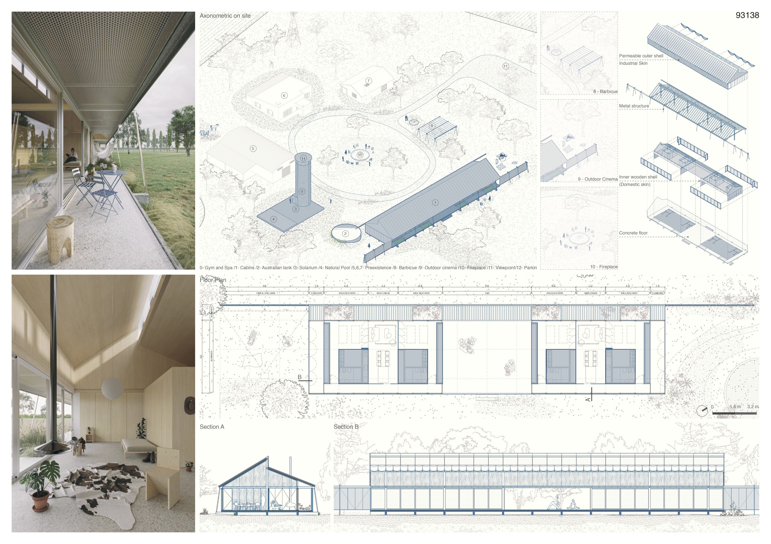 The “Australian tank,” a fundamental rural element, is redefined as the complex’s center of leisure. Once pure infrastructure, it transforms into a Wellness Hosue with a new poolintegrated with the tank, spa, solarium and gym. The tank becomes a meeting point and the symbolic heart articulating the Madreselva‘s life.