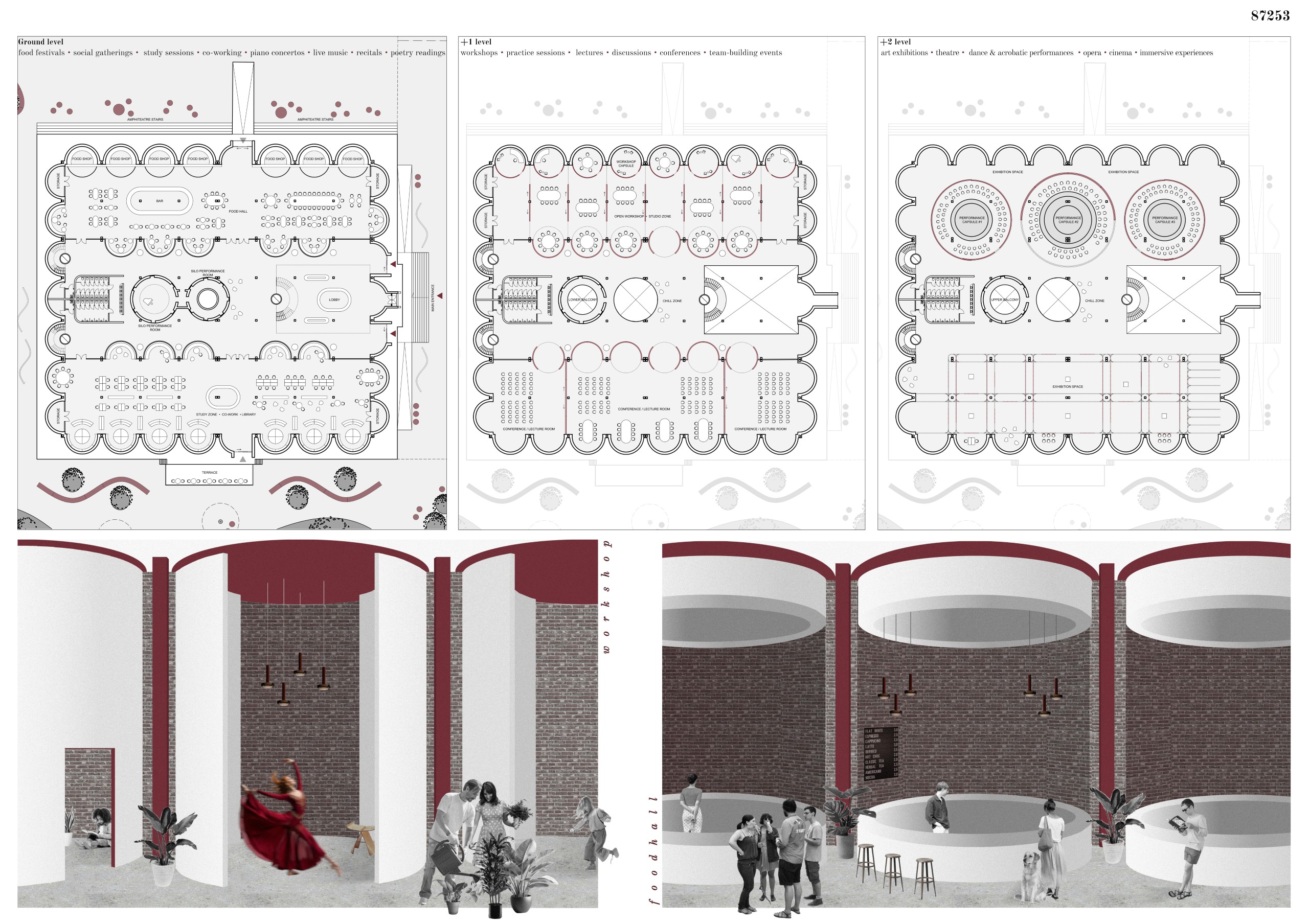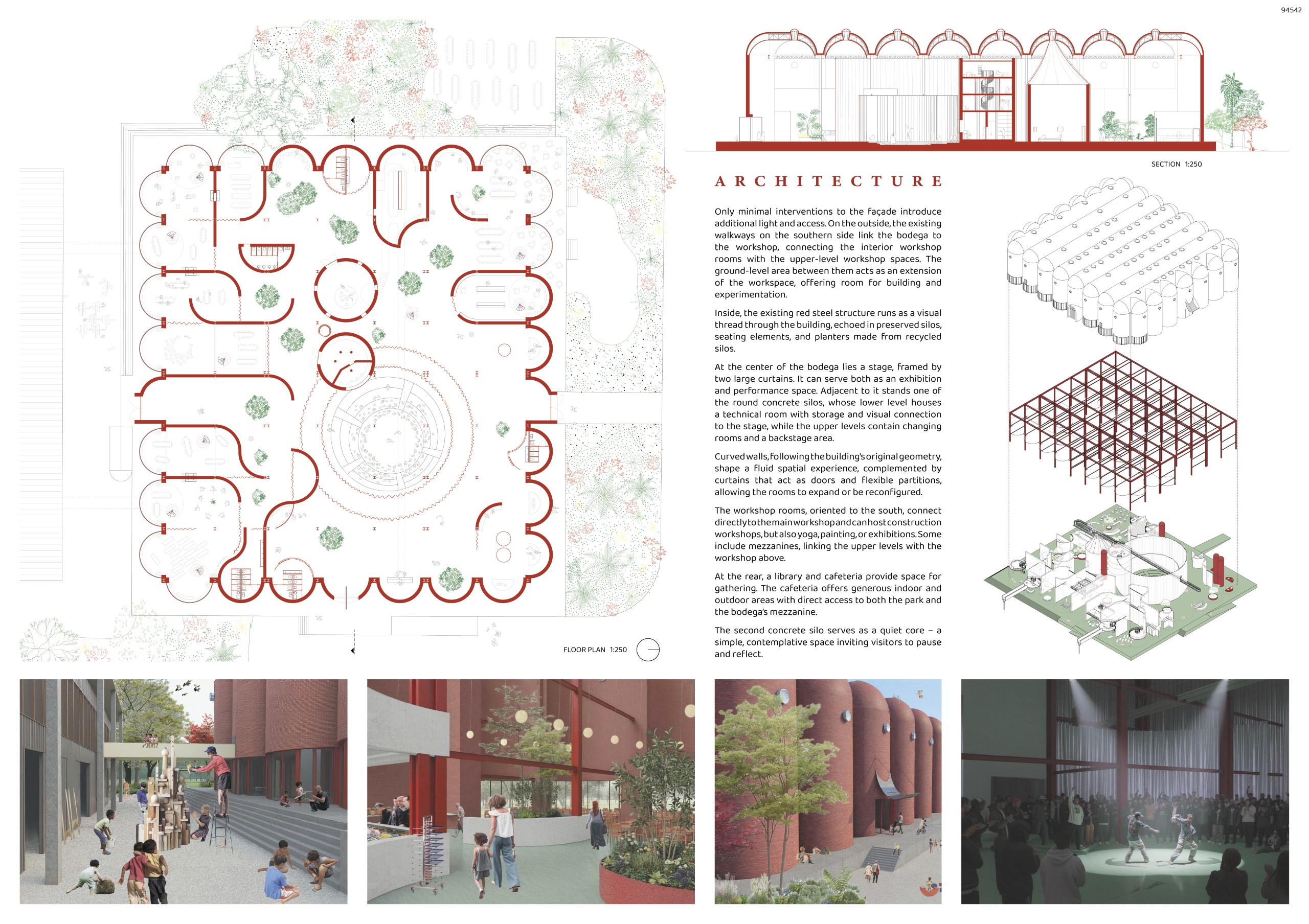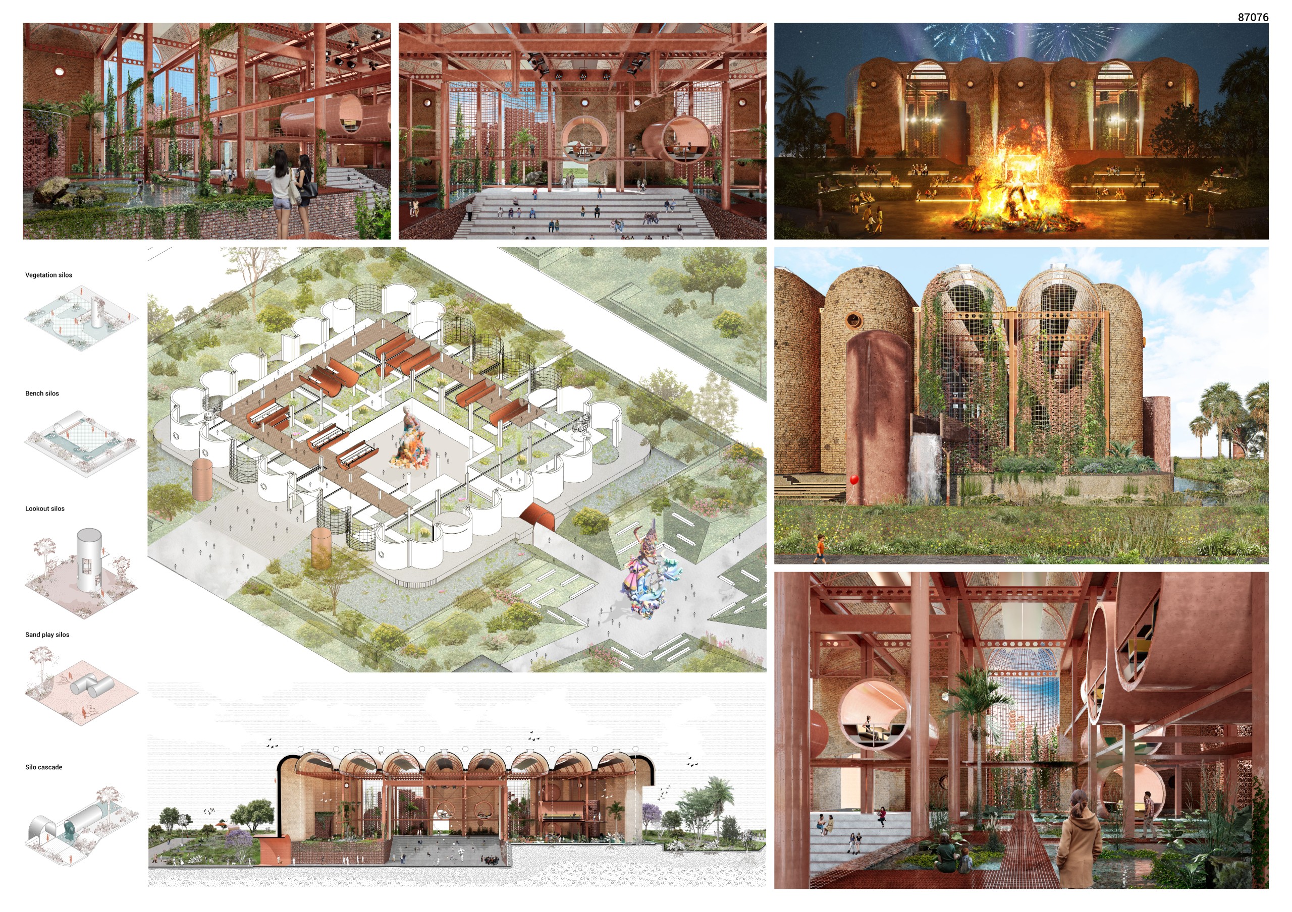 “This proposal stands out for its beautiful integration of landscape and architecture, transforming the silos and water systems into a living ecological framework. It creates a sustainable, climate-responsive environment while preserving the agricultural and industrial memory of the site.”