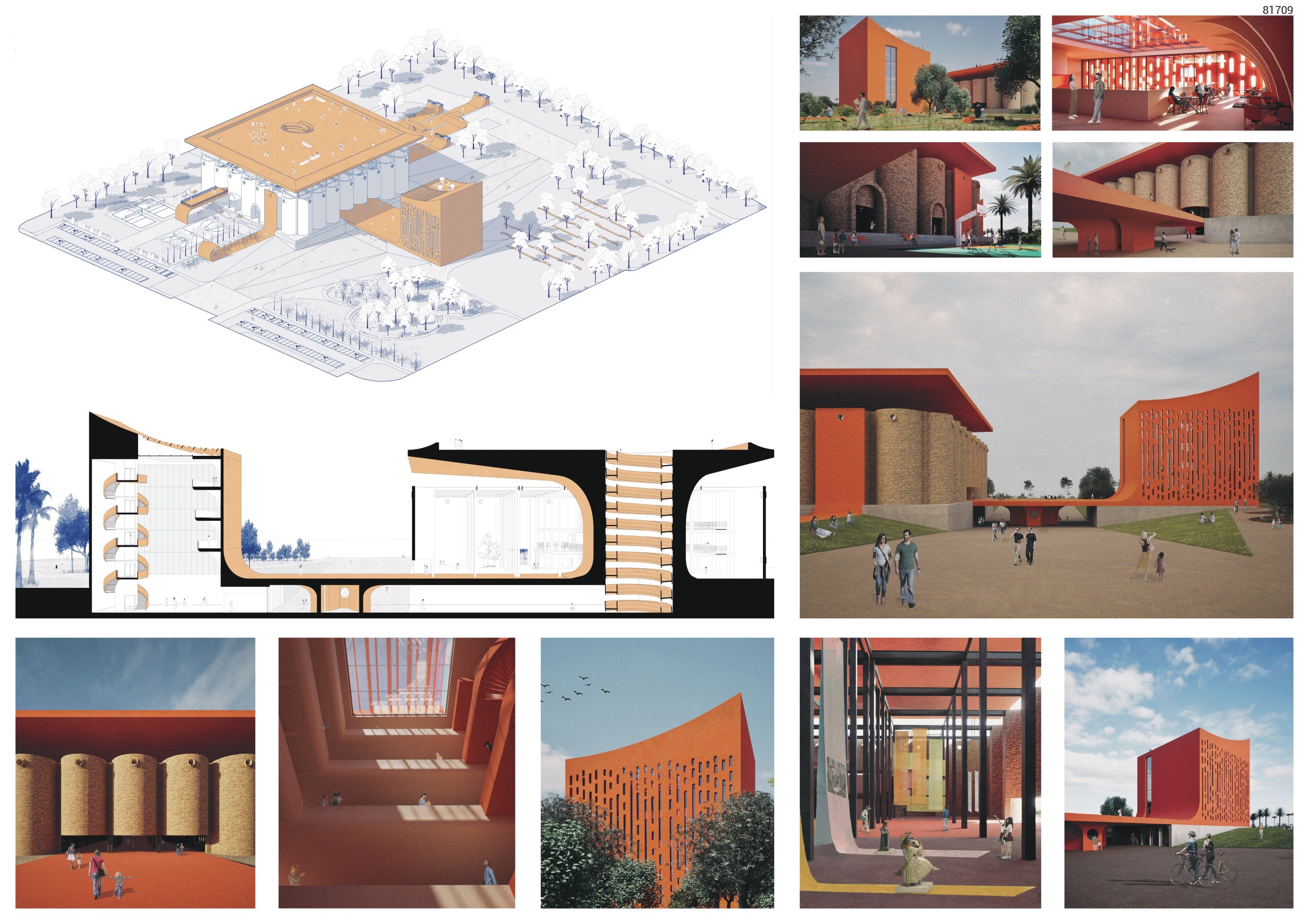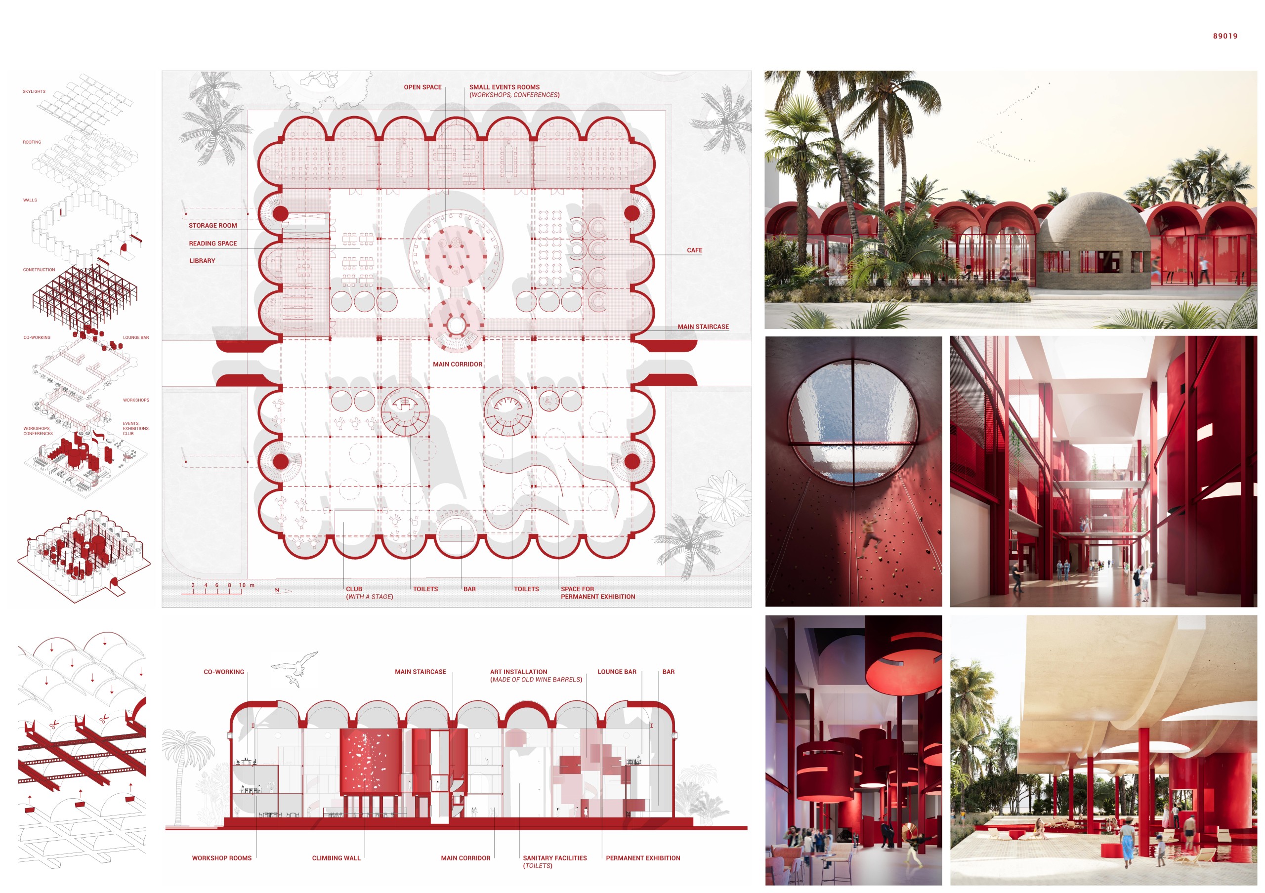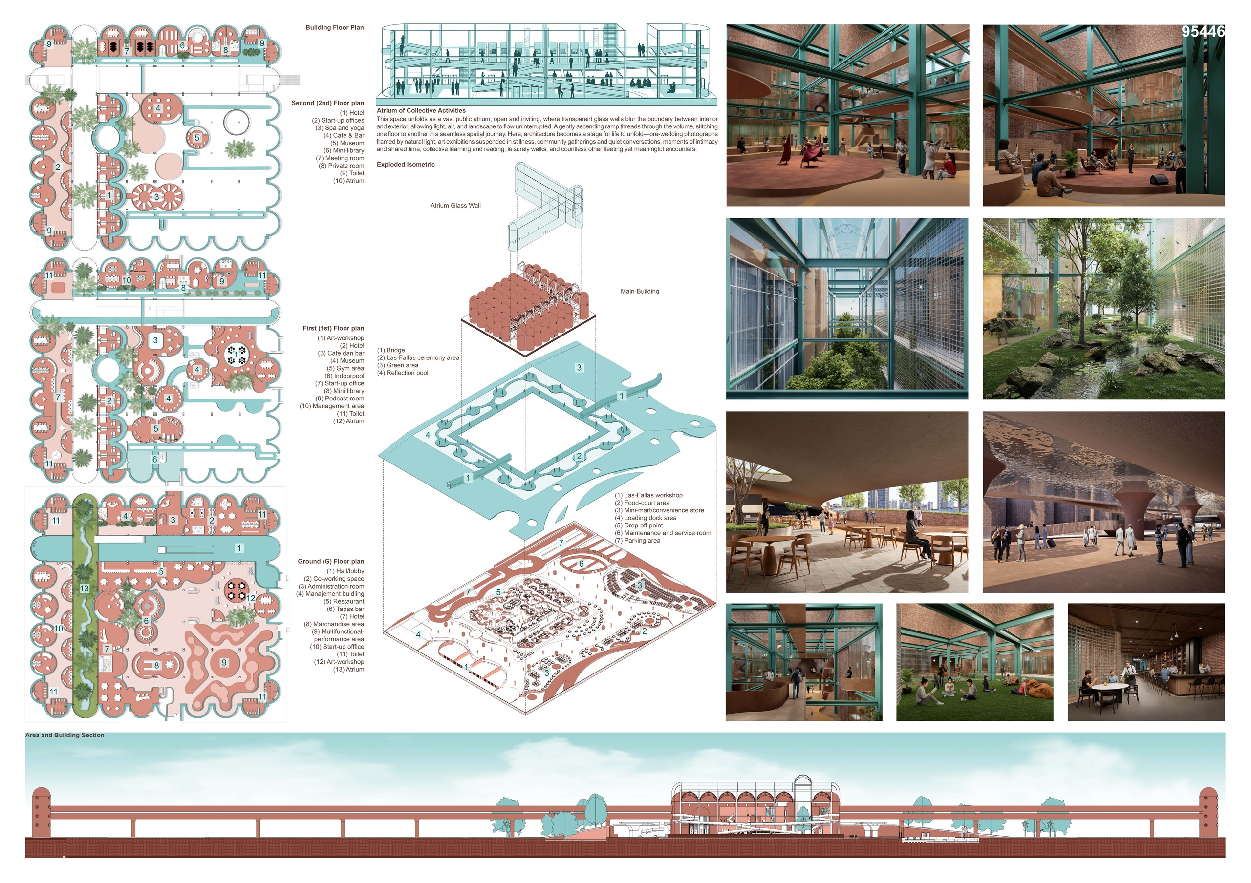 The interior program embraces adaptability: exhibition galleries, workshops, and multipurpose halls are organized within a flexible structural grid, allowing reconfiguration without altering the primary framework. This openness encourages cultural continuity and collective participation.