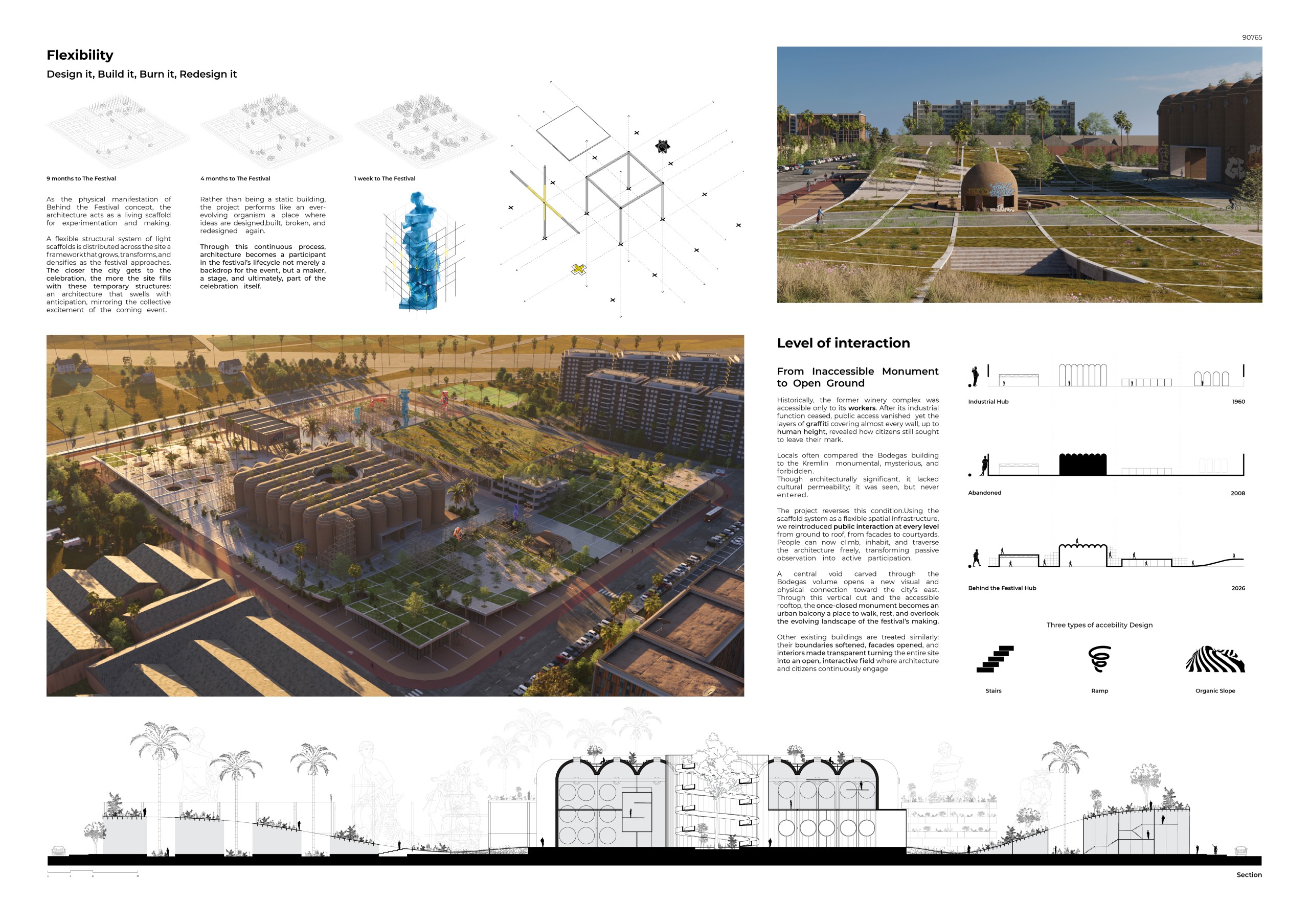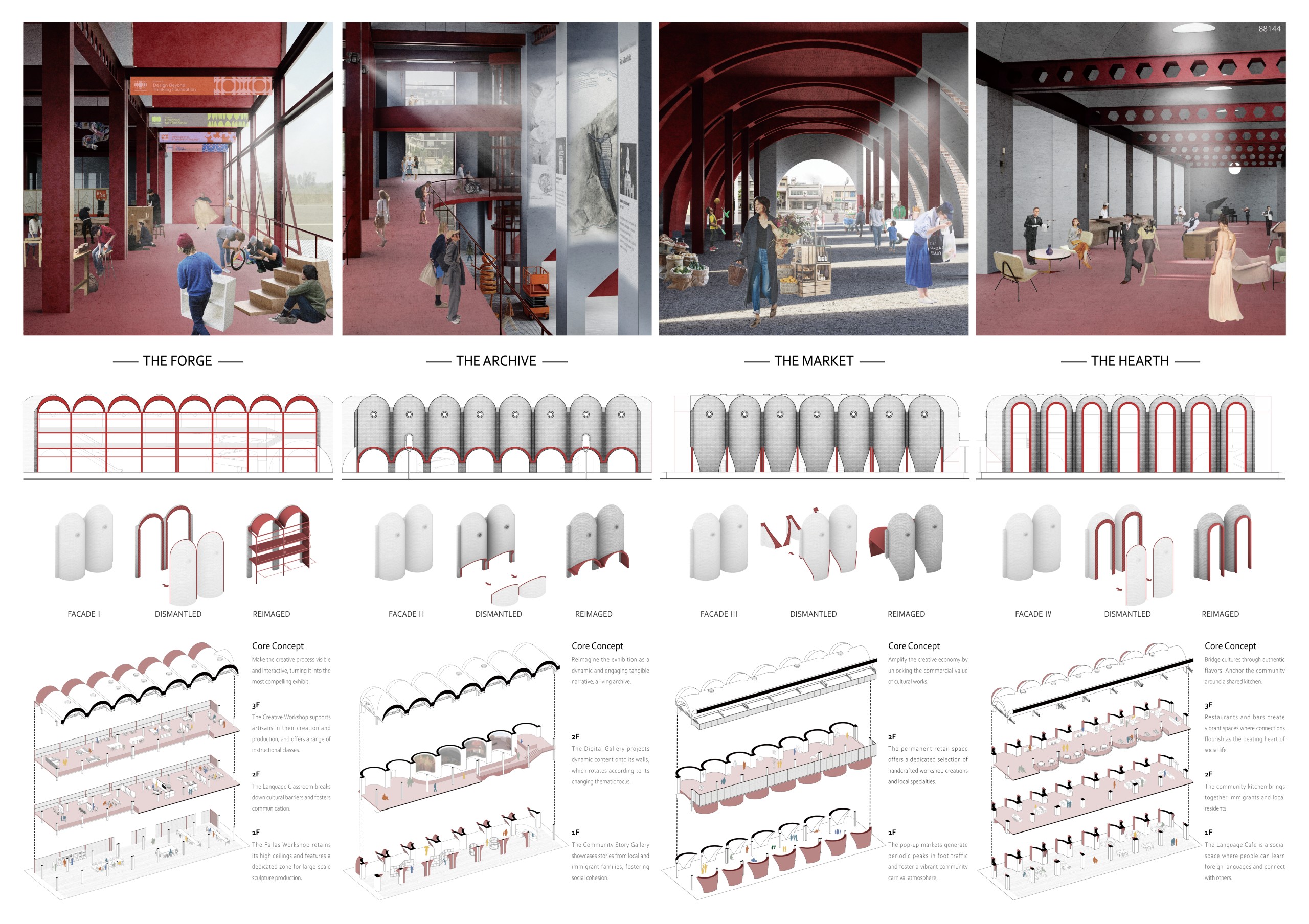 The project moves away from conventional renovation, which often confines itself to preserving a singular form. Instead, it proposes a system where one building fractures into many, allowing its spirit to spread across the site and resonate into the city. Architecture here is mutable, interactive, and open— bridging the temporary nature of festival with the slower rhythms of everyday urban life.